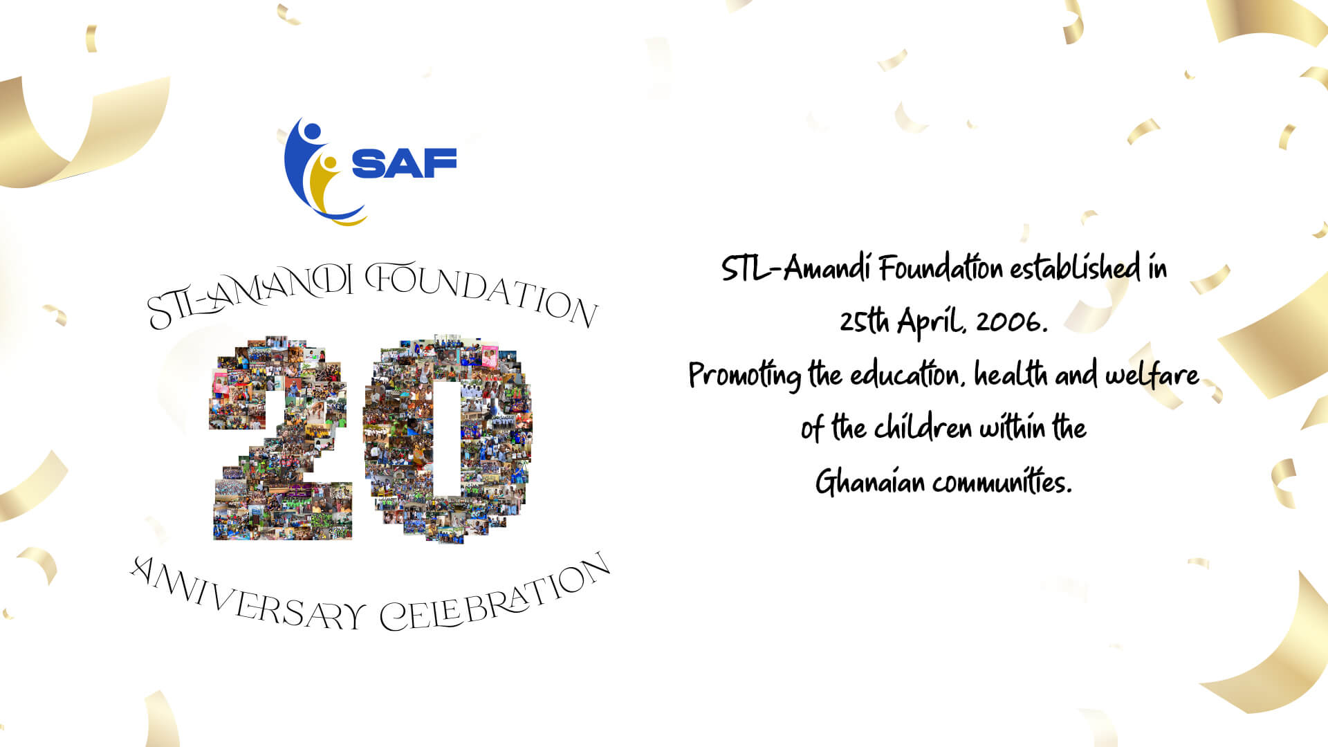 The STL-Amandi foundation (SAF) is celebrating its 19th year of continued support and volunteering initiatives.We believe in giving back to the communities in which we work and our focus is on educational initiatives. Giving back means that our partners and volunteers are spread among our various initiatives and play an active role in bettering the educational experiences of several school in Ghana.